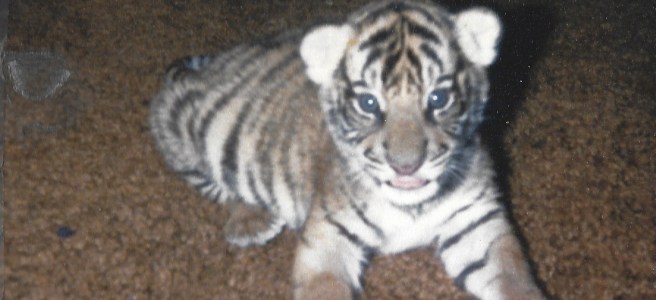 Baby tigers are also definitely not kittens. My father was always adamant that they were not pets. For one thing, they’re larger than kittens, and exponentially stronger.  A scratch or nip can do real, permanent damage. House cats have been domesticated for thousands of years. They have an instinctive connection with humans, and have altered their behavior over thousands of years to better coexist with us. Baby tigers, or any baby wild cat, are trainee apex predators.  As children we were not allowed unfettered access to the babies in our care, and were generally not allowed to be alone with one.